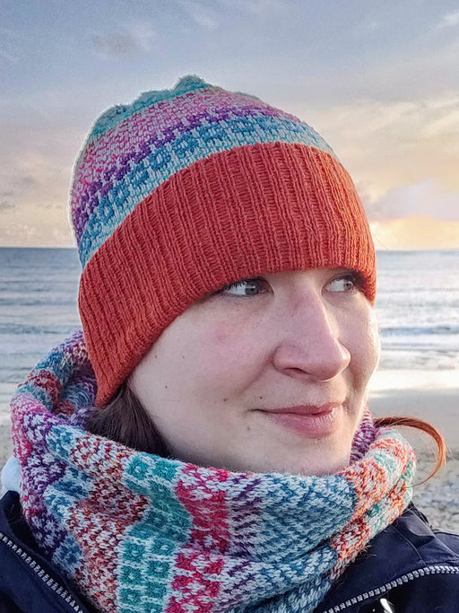 Annie Glue£34.95Gorgeous Stormy Seas Fair Isle pattern hat by Annie Glue, Judith's Daughter. This hat is made and designed in Orkney using Scottish lambswool and I...