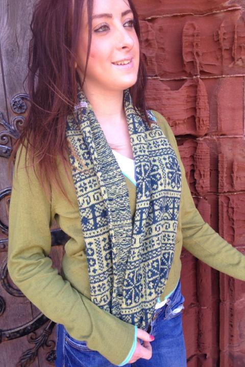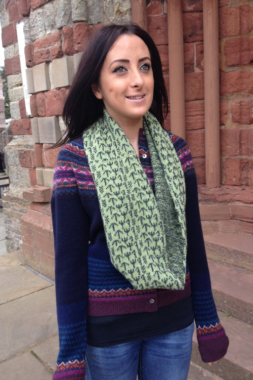 Annie Glue two colour Green Fair Isle Snood