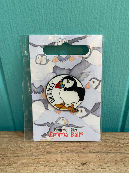 Emma Ball£6.95Orkney round enamel pin badge exclusively designed by Emma Ball for Judith Glue - a really cute puffin badge. Comes on card mount. Dimensions 1" di...