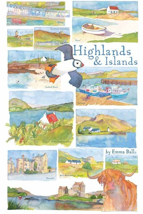 Emma Ball Orkney Seathrift Puffin Tea Towel