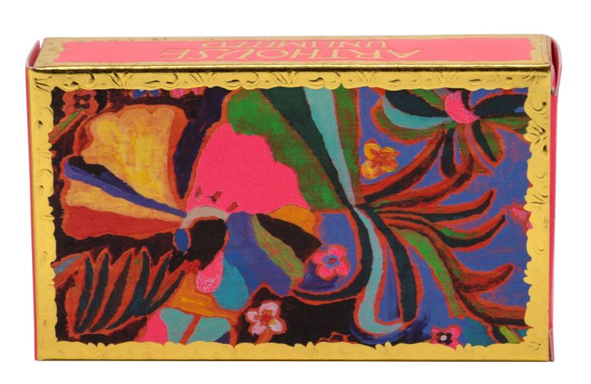 This opulent plant based soap, gently fragranced with violet, pink pepper, orange blossom. Nestling in a treasure chest-like box featuring Laura Tregellas' 'Psychedelic Dreams' artwork, the 100g paraben-free soap is triple milled for a longer-lasting luxurious lather. Made in the UK, this vegan friendly plant based soap is produced with carefully sourced ingredients that are both sustainable & kind to the environment. An ideal gift for art lovers and good-cause supporters everywhere!