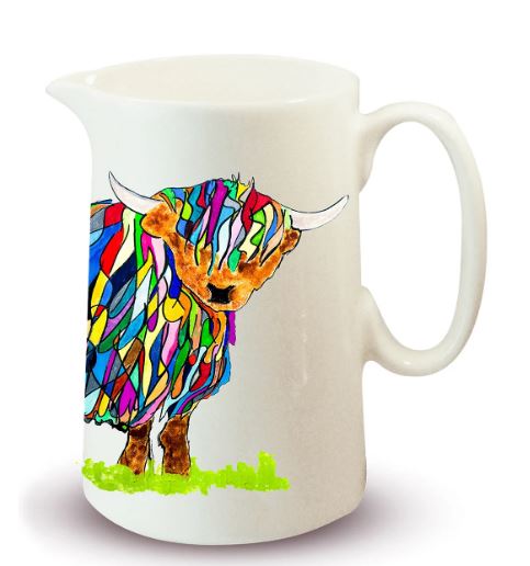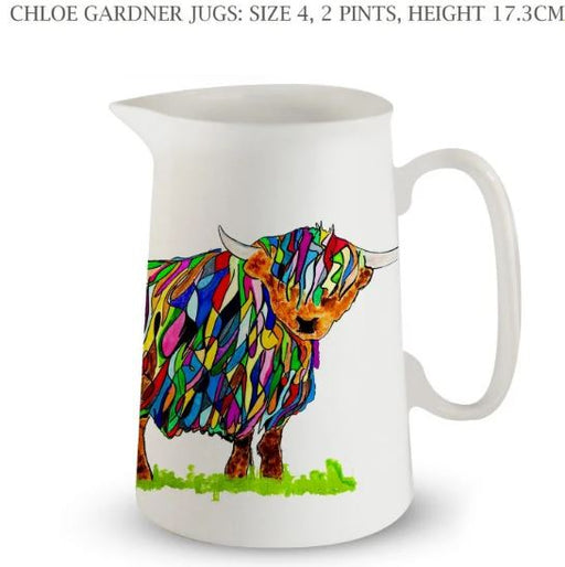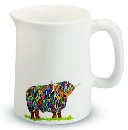 Chloe Gardner£21.95Beautifully finished 1/2 pint fine bone china jug in Chloe’s bright multi-coloured highland cow design. The highland cow features on the front of t...