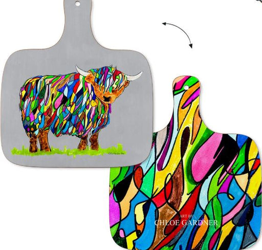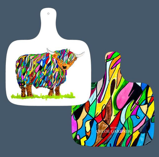 Chloe Gardner£22.95This is one of my medium chopping boards. It has my bright highland cow on one side and a multi coloured back. It is 29.2 x 25.4cm It is made out o...