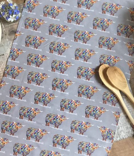 Chloe Gardner£15.95A 100% cotton tea towel printed with my Bright highland cow design with a grey background. 48cm x 79cm 100% cotton Machine washable
