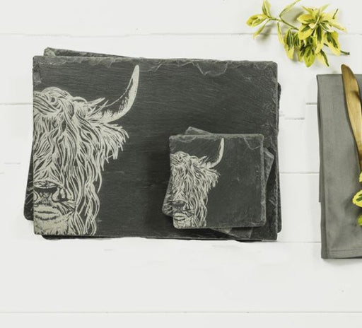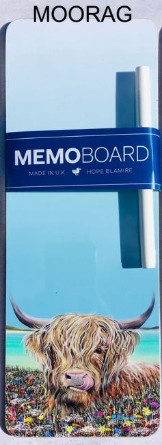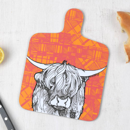 Chloe Gardner£22.95It has my bright highland cow on grey on one side and a multi coloured back. It is 29.2 x 25.4cm It is made out of eucalyptus and melamine. It is n...