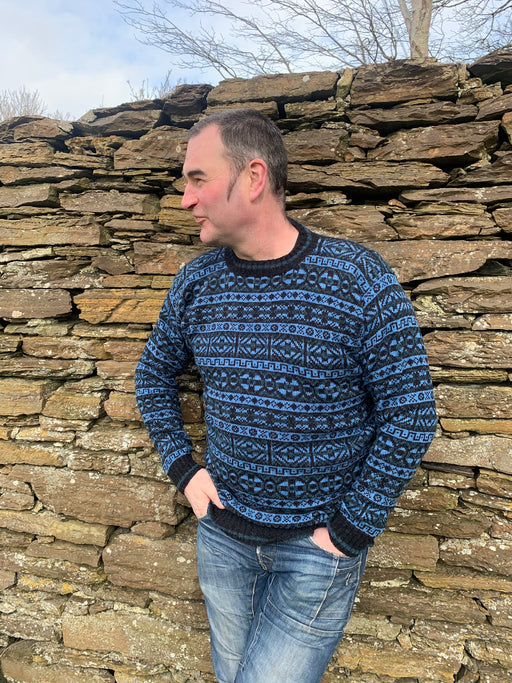 Traditional Fair Isle Crewneck Sweater in Sea Blue