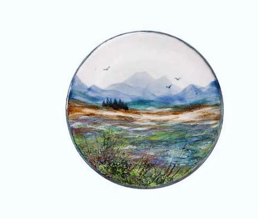 Cath Waters£9.95A beautifully glossy, 9 cm cork backed ceramic coaster. This is an individual coaster with matchbox style gift box. Cath Waters is a Scottish lands...