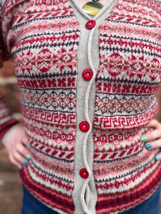 These lovely cardigans have unique runic buttons exclusively made for Judith .