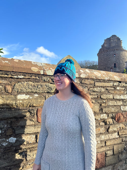 Wonky Woolies Orkney Runic Hat in Navy/Turquoise