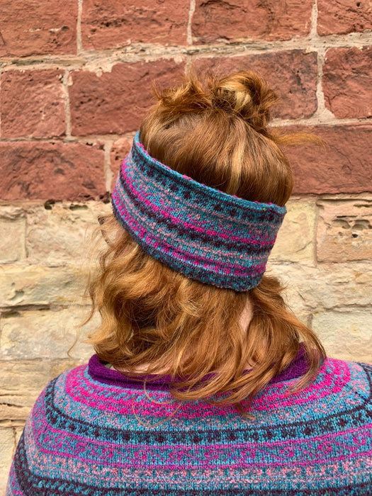 This gorgeous boat neck jumper is lovely and warm made from super soft Scottish lambs wool and Italian merino. The colour way is Sea pinks (Armeria maritima) which takes its name from a flower found on the cliff tops in orkney.  This traditional style pattern has taken influences from Orkneys rough stormy seas. Each one is made to order in Orkney by Annie Glue.