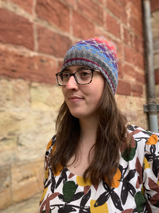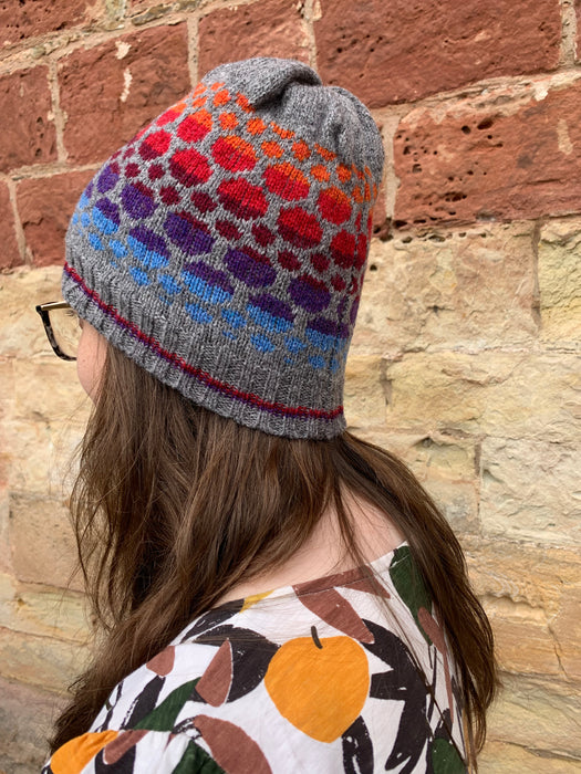 Gorgeous spotty pattern hand warmers by Annie Glue, Judith's Daughter. This hat is made and designed in Orkney using Scottish lambswool.