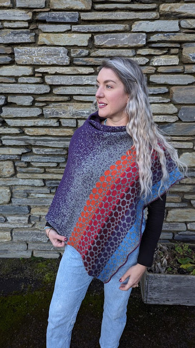 Gorgeous spotty pattern poncho by Annie Glue, Judith's Daughter. This poncho is made and designed in Orkney using 100% Scottish lambswool.
