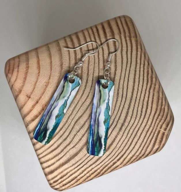 My “Bothy Life“ wearable art jewellery range was inspired by my mixed media artwork of the same name, showing a loch, rolling hills & Bothy living in the Highlands of Scotland.