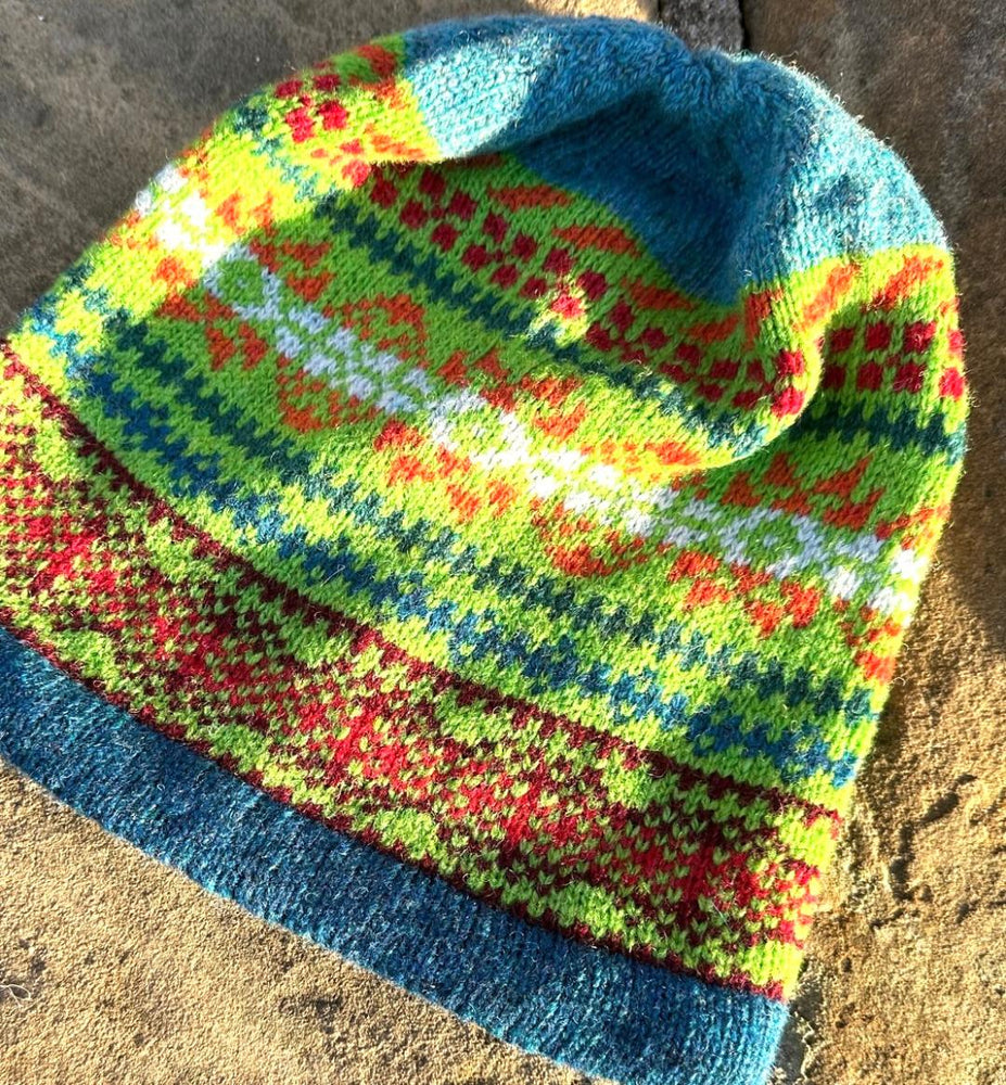 This lovely pull on hat has been designed by Judith Glue and the colours and textures have been influenced by the beautiful Sea Grass which is a flowering plant which form meadows under the sea in shallow coastal areas. The meadows are extremely important as hosts for many different animals. Mapping has been on going in Orkney for a few years where there is a key part of the work to protect this valuable marine ecosystem happening.