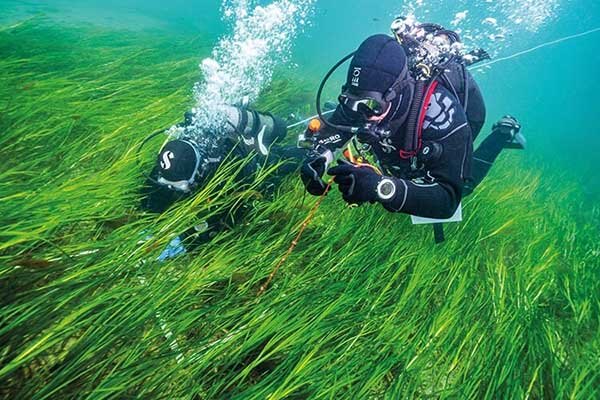 This lovely pull on headband has been designed by Judith Glue and the colours and textures have been influenced by the beautiful Sea Grass which is a flowering plant which form meadows under the sea in shallow coastal areas. The meadows are extremely important as hosts for many different animals. Mapping has been on going in Orkney for a few years where there is a key part of the work to protect this valuable marine ecosystem happening.