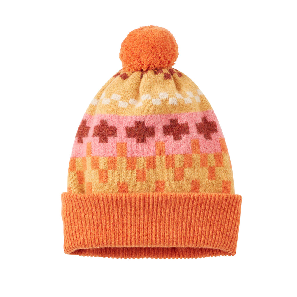 This knitted beanie is the perfect topper to your winter wardrobe. The pattern takes its inspiration from Fair Isle knit designs – it’s literally a big stitch!