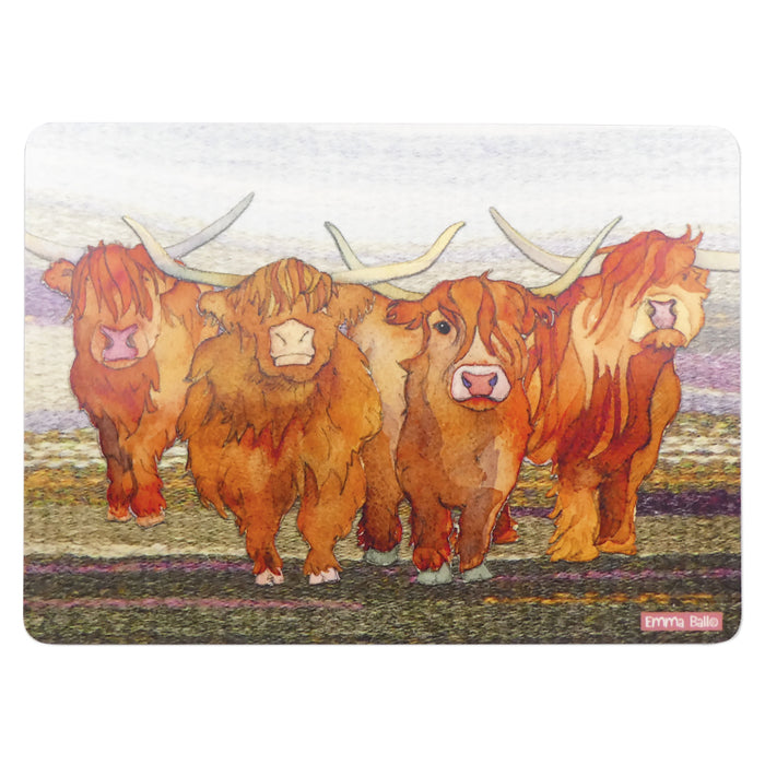 This single cork-backed placemat features Emma’s illustrations from her Highland Coo Collection. They withstand temperatures of up to 140 C, measure 28.5cm x 20.8cm, and are also made in the UK! These mats are the perfect way to protect your table surface from spillages and hot plates and have matching coasters to purchase separately
