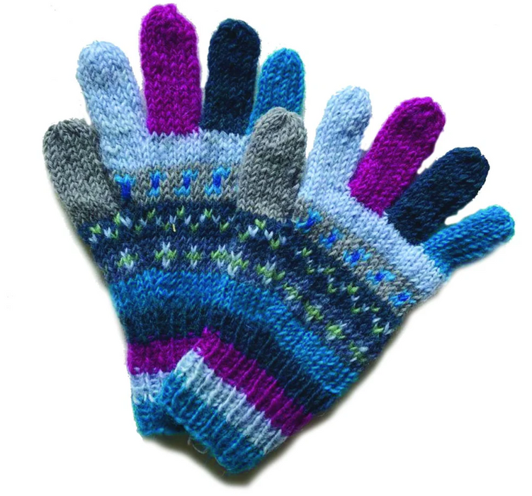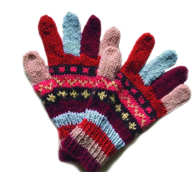 Nordic design hand knitted wool gloves in black and white, fairly traded from Nepal. Single knit wool gloves that have the natural warmth of wool and are fine enough to wear every day.
