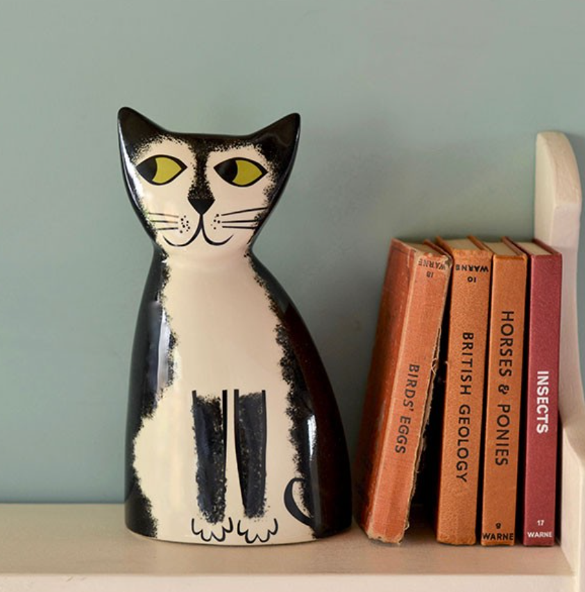 Hannah’s Cat Coin Bank has enormous feline appeal for adults and children alike and will capture the heart of any cat lover. The retro style of this Cat has a very nostalgic feel and Hannah’s comic graphic style creates a characterful gift with bags of charm. There is a slot on the back of the head for the pennies or pounds and a rubber stopper in the base for emergencies!