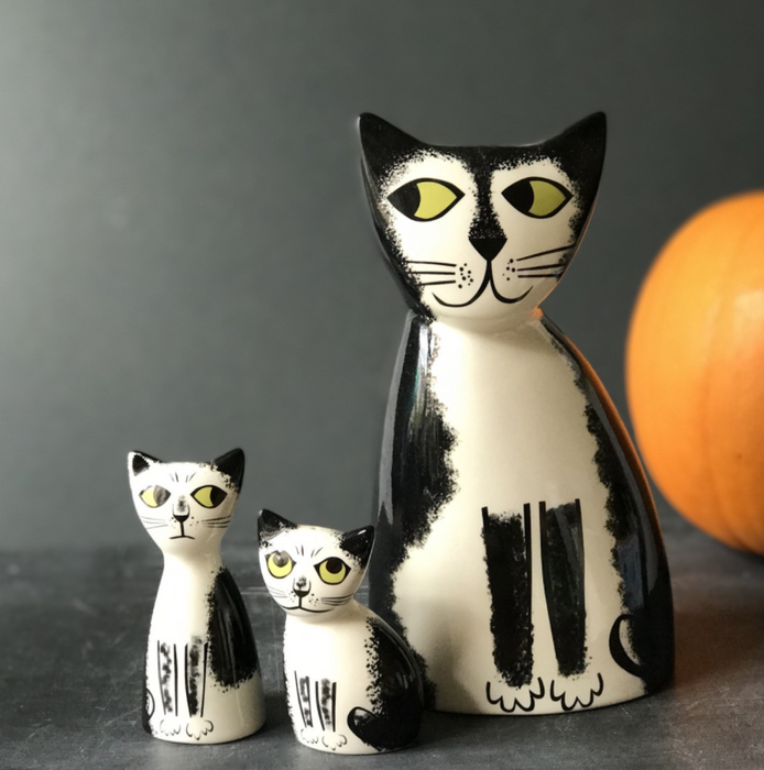 Hand-sponged and decorated with Hannah's classic kitty expressions, these pottery pussy cats are here to help you to look after your pennies and pounds.