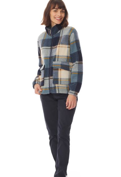 Description: Women's Sherpa zipped fleece jacket Cut: Loose fit with a length at the hips. Details: - Straight collar - Opening with plastic zip - 2 patch pockets with flap - 2 hand pockets on the sides - Elasticated cuffs - Label on the left sleeve
