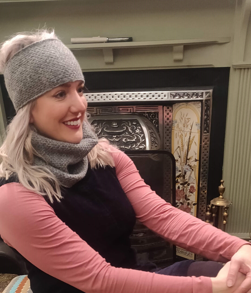 Textured headband from Annie Glue knitwear, knitted in super soft Scottish lambs wool perfect for long chilli walks this winter. these come in a range of lovely bright colours and there are hand warmers and snoods to match.