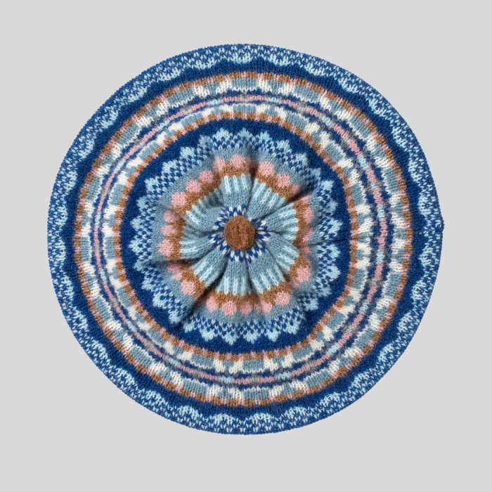 A stylish, easy to wear beret with beautiful ERIBÉ Fairisle patterning and a tiny pom-pom on top. Indulge in a touch of luxury to keep you warm over the winter months. Our beret is sure to become your favourite accessory to pull out when it's chilly outside! Knitted in Scotland in 100% Merino wool.