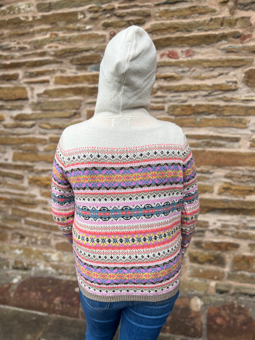 This sporty hoody sweater feels super soft and luxurious. Knitted firmer than the Kinross Sweater for extra warmth, and a glamorous alternative. With rib hems, knitted hood and wool cord.