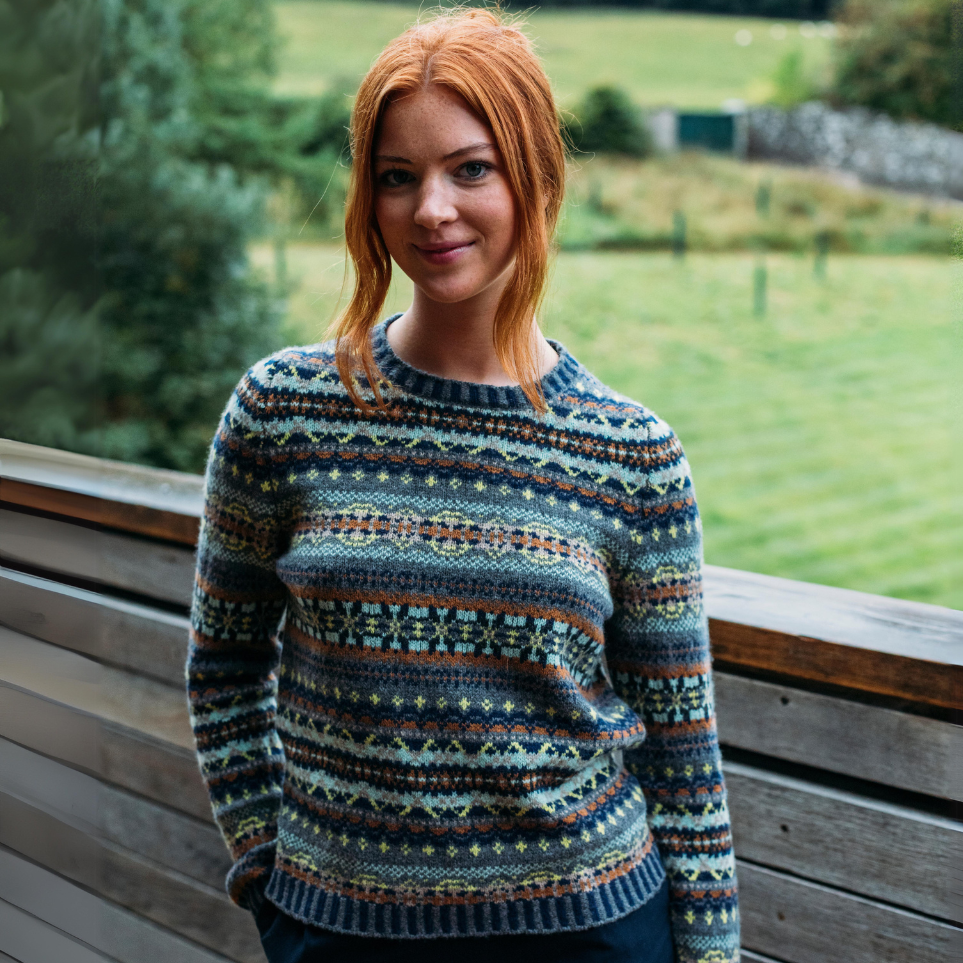 Experience the luxurious feel of our ultra-soft Fairisle Sweater, crafted from premium lambswool that rivals the softness of cashmere. With distinctive striped hems and collar, this traditional Shetland Fairisle boasts a lightweight design yet provides exceptional warmth due to cleverly placed "floats" that trap air.