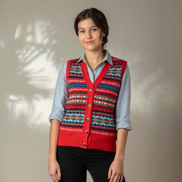 A regular fit, vee neck waistcoat that gives a flattering effect due to the long rib hem that
