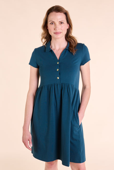 A fit and flared Tunic Dress with a V-neckline and collar. This cute, every-day dress is perfect for casual occasions, and the side pockets make it a great dress for popping into town. This garment is made using 100% GOTS Organic Cotton Jersey, an environmentally friendly style that you'll want to wear again and again.