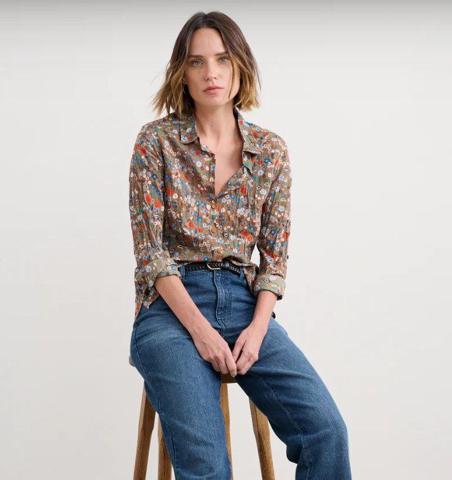 Our Larissa Shirt is a year-round favourite. Made from the softest organic cotton with a casual crinkled appearance, the beauty of this shirt is that it doesn’t need ironing – just wash and twist to keep the crinkle. This semi-fitted style is easy-to-style and comfortable, with long sleeves and button loops so you can roll up the cuffs to change your look. Each season, it showcases some of our most-loved prints, created by our talented textile designers.