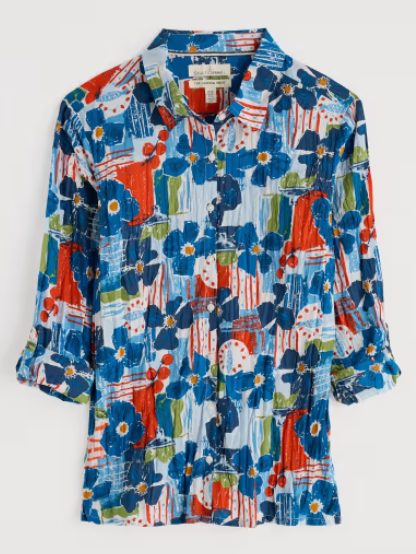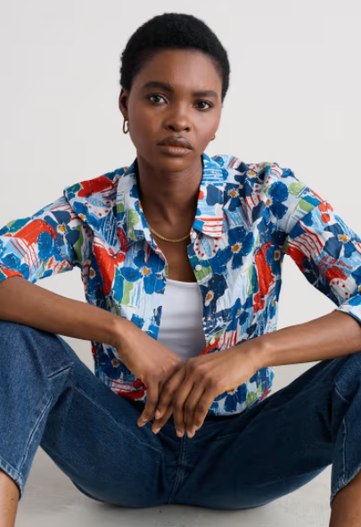 The Larissa Shirt is a year-round favourite. Made from the softest organic cotton with a casual crinkled appearance, the beauty of this shirt is that it doesn’t need ironing – just wash and twist to keep the crinkle. This semi-fitted style is easy-to-style and comfortable, with long sleeves and button loops so you can roll up the cuffs to change your look. Each season, it showcases some of our most-loved prints, created by our talented textile designers.