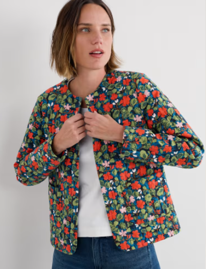 Product Details Throw on this quilted cotton jacket for instant, easy style. Versatile and lightweight, it's been designed to be worn open over a simple top or jersey stripes, but we also love it with a linen dress for summer weddings and garden parties. Lightly padded with polyester wadding, fully lined and finished with patch pockets.