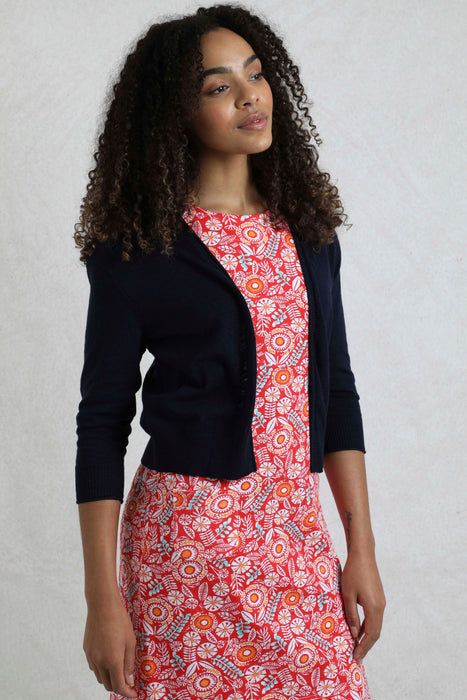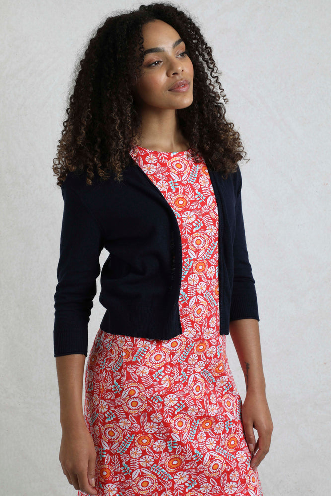 Need a coverup that won't leave you too hot and bothered once the temperatures start to rise? Look no further than the Limon outfitter cardigan. The swing, cropped shape keeps it feeling fresh and easy to style with dresses, tops and tunics. It is lightweight and really comfortable with rolled edges and an open weave back detail.