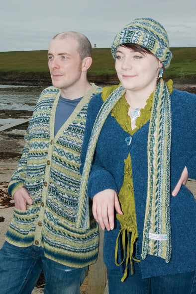 This design reflect the colours and textures of the sea and shorelines of Orkney, she uses a fully fashioned method for making her collection and each piece is shaped by hand on a small domestic knitting machine then sewn together and finished by hand. When you buy a garment from Judith you are truly buying an item that has been painstakingly made in a home and not mass manufactured.
