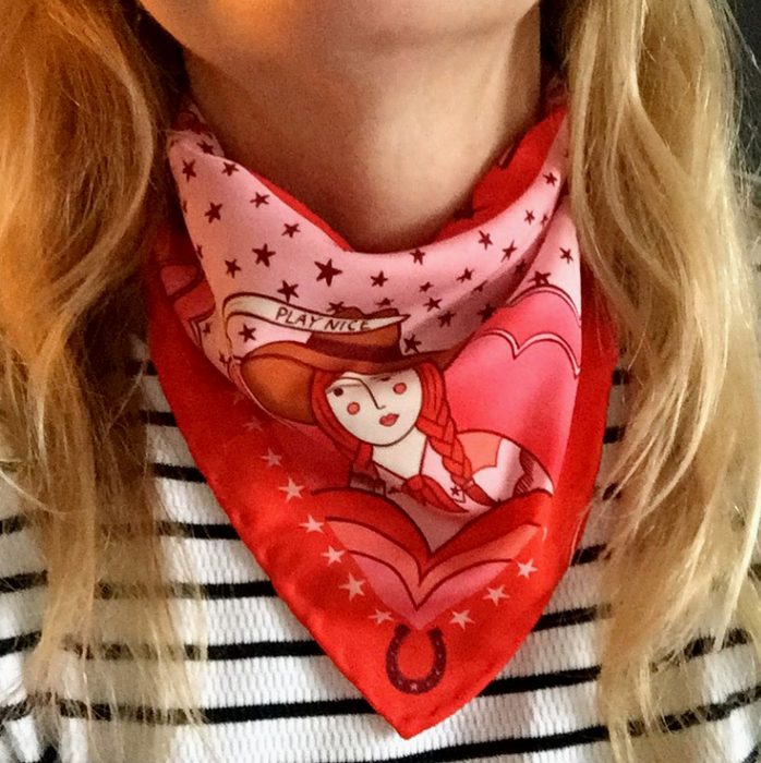 This pocket square features a sassy cowgirl and her white stallion (ahem ...pony!)